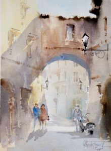LetztesAquarelll meiner Toscana Serie mit demTitel – Motorroller. Typisch für Italien und die kleinen Dörfer in der Toskana sind diese Motorroller als Fortbewegungsmittel.
