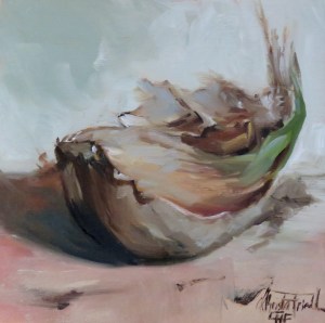 Back to the rootspracticing stil life objects in small format. Found in my refrigerator this old garlic root. So i thought give it a try. Hope you like it