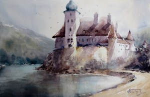 plein air painting at Castle Schönbühel, painted before noonCastle Schönbühel is situated  in the UNESCO World Heritage Region Wachau Danube, in Austria. A wonderful region along the Danube with a lot of history.