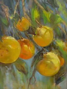 Sunlit Oranges on a tree